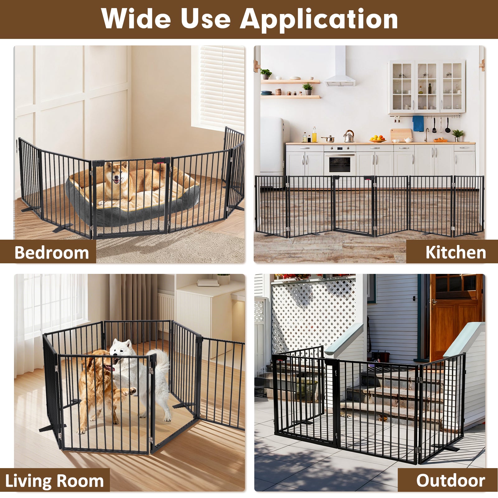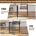 【Double Locking System Freestanding Pet Gate with Door】This heavy-duty 4 or 6-panel folding dog gate outdoor features a built-in door and a smart dual lock system to prevent pets from opening it. The self-closing function automatically shuts the dog fence outdoor for yard when swung under 90°, while it stays open at 90°. Easy one-hand operation offers added convenience, and no more worries about forgetting to lock it