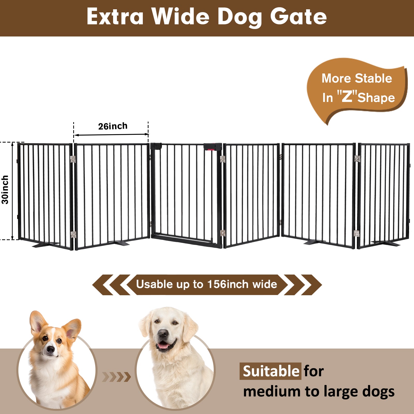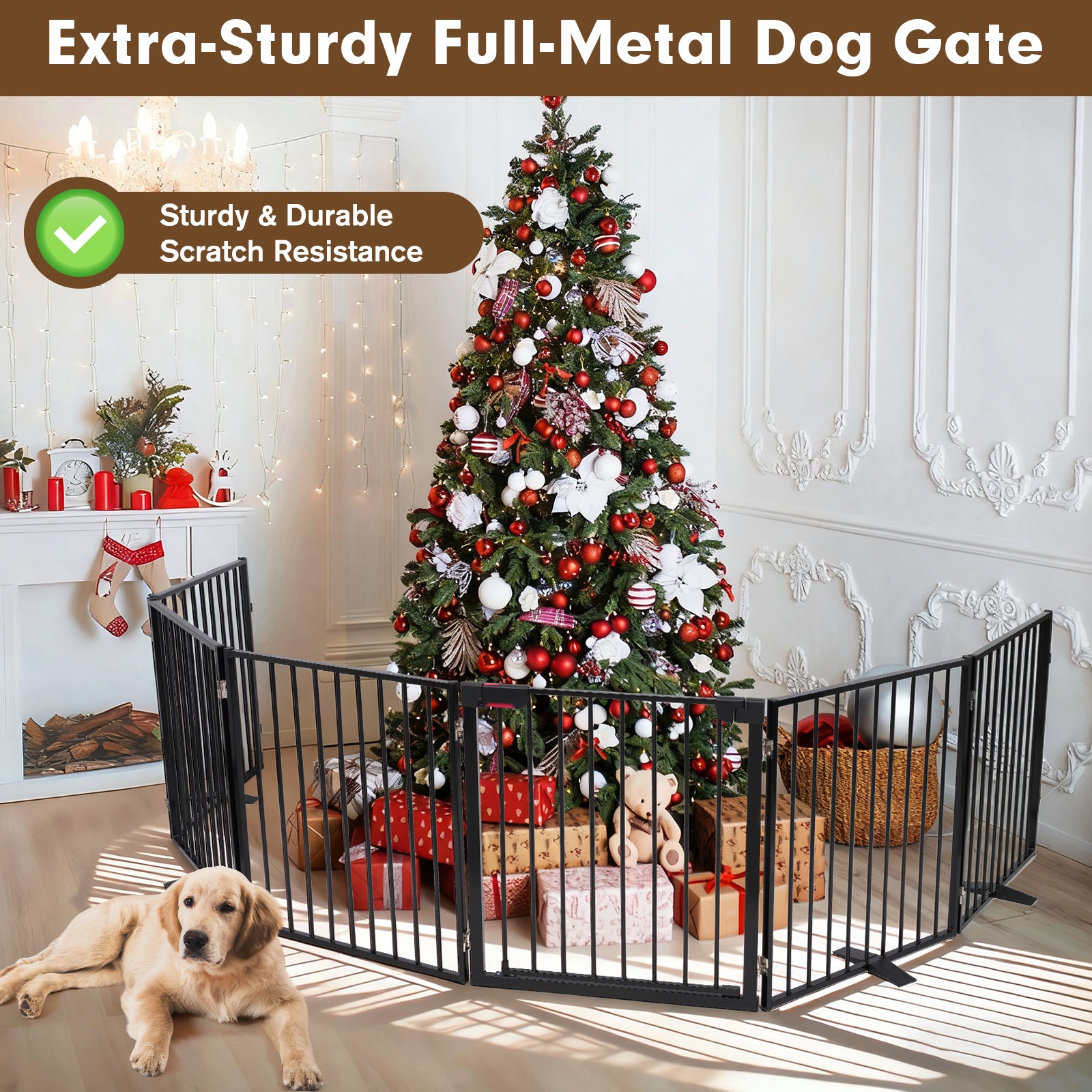 52" Extra Wide Dog Gate, Heavy Duty Metal Freestanding Dog Gate with Door for Indoor & Outdoor, Foldable Pet Fence for Stairs, Doorways,House,Porch,Deck,Yard, Auto Close