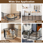 【Multifuncational Portable Dog Fence】Each panel is connected by reinforced metal hinges that allow 360° rotation, offering flexible arrangement to suit your space. For enhanced stability, you can install the included wall mounts to ensure the barrier remains securely in place. The minimalist design integrates effortlessly with any home décor, delivering both practical functionality and modern aesthetic appeal