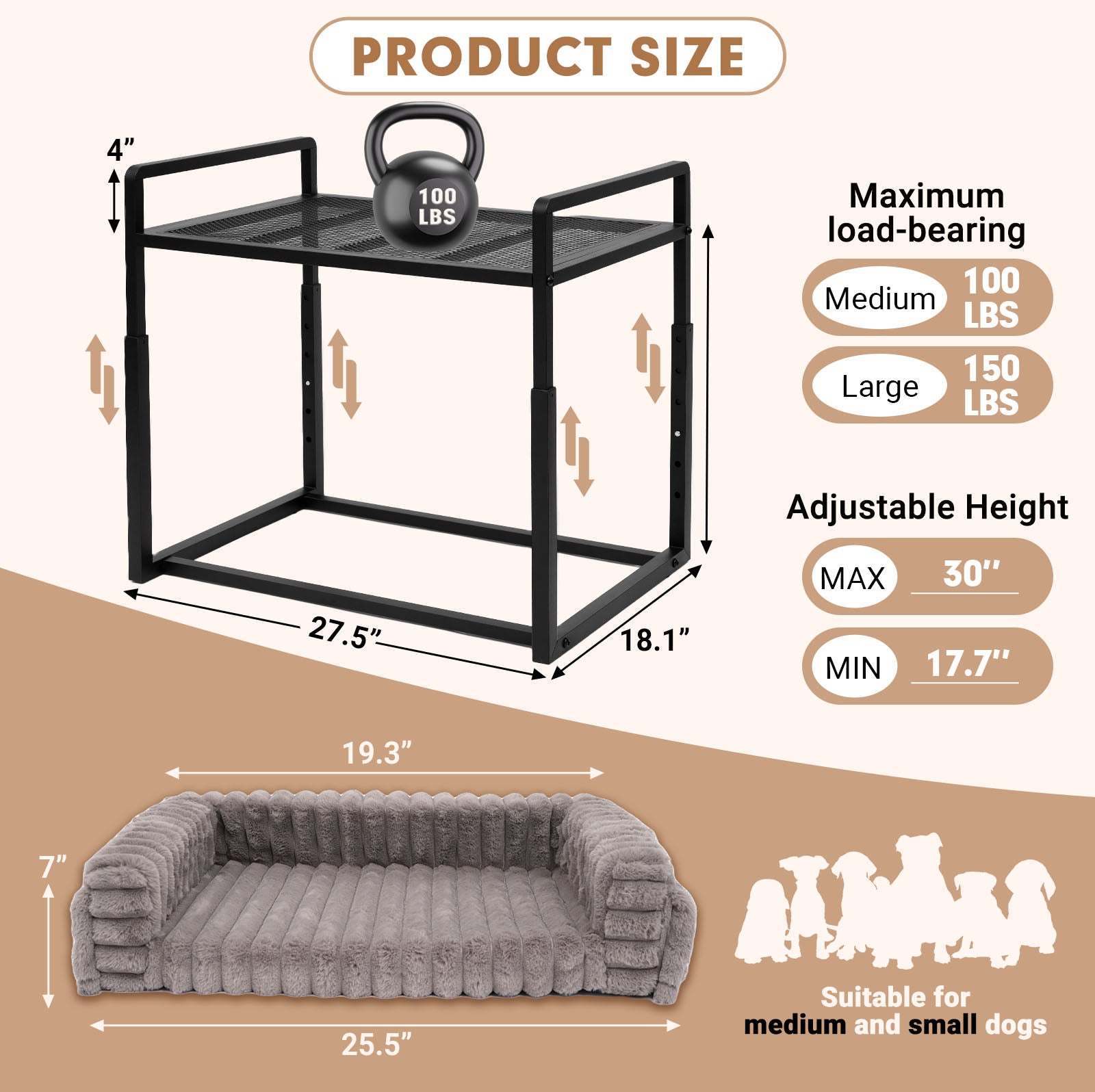 『SAFE AND SECURES』➞ This bed extender for dogs features sturdy support panels that provide excellent weight support and help prevent accidents. Its four locking wheels ensure stability and safety for your pet. Dog bassinet size is 33.5x22.5x29 inches. Supports pets up to 100 lbs, ideal for small to large breeds